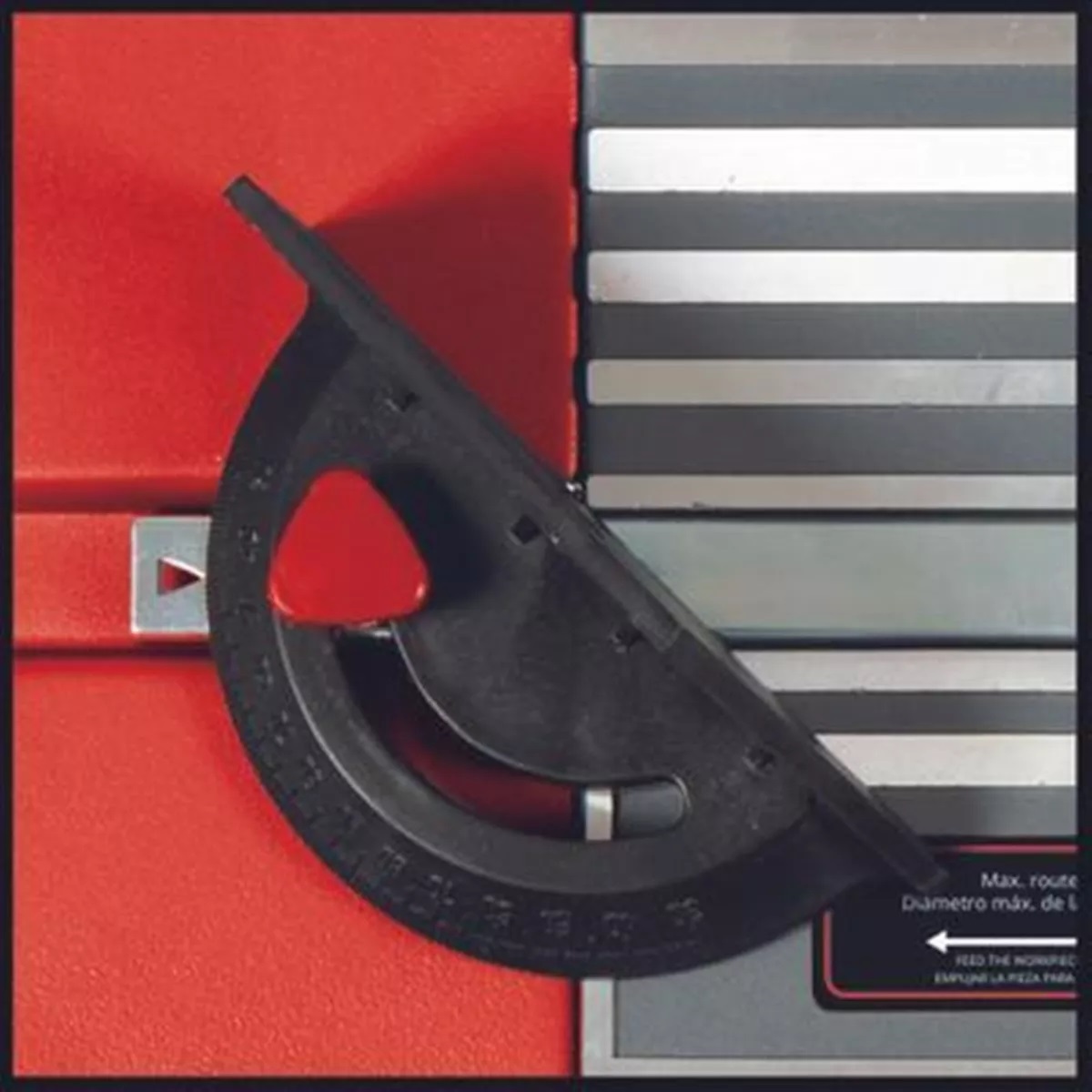 La mesa para router cuenta con una guía trasera que se puede ajustar para acomodar el tamaño de una pieza de trabajo en particular. Se incluyen cinco insertos de mesa, cada uno con una abertura de diferente tamaño; simplemente seleccione el inserto de mesa que tenga un orificio de paso más grande que el diámetro de la fresa que se está utilizando. La mesa de aluminio fundido de 455 x 335MM brinda mayor estabilidad, durabilidad y mayor precisión