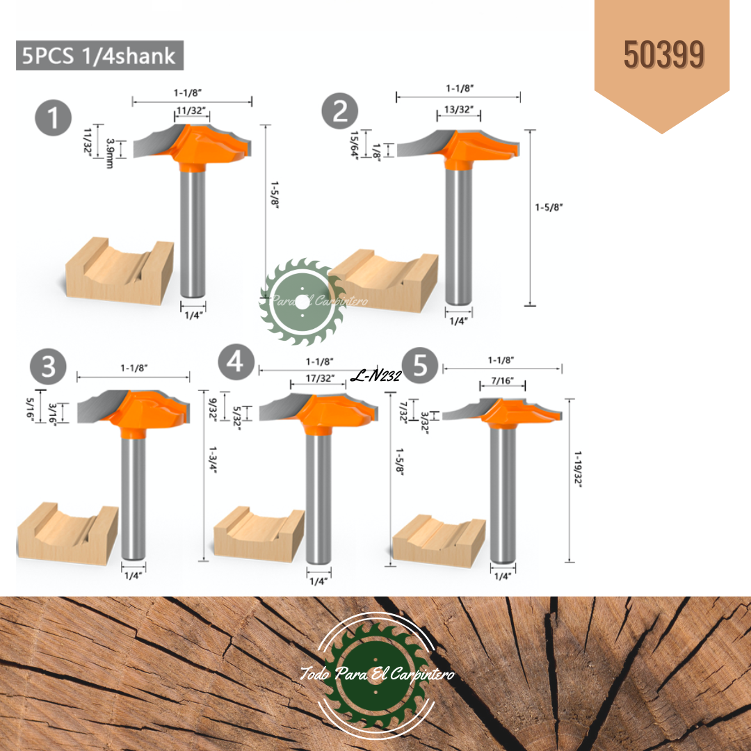Set de 5 Fresas moldurar tablero TPCtools